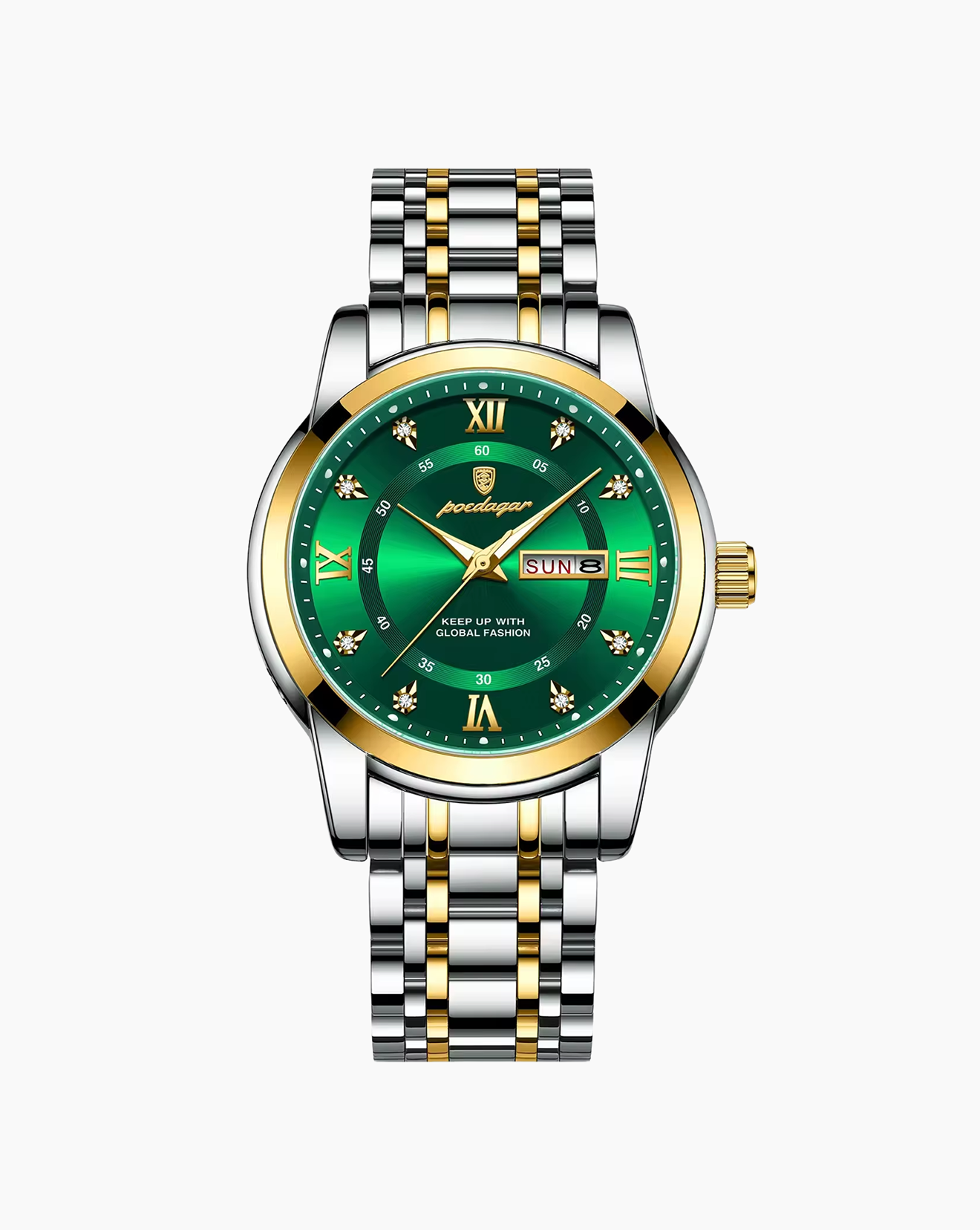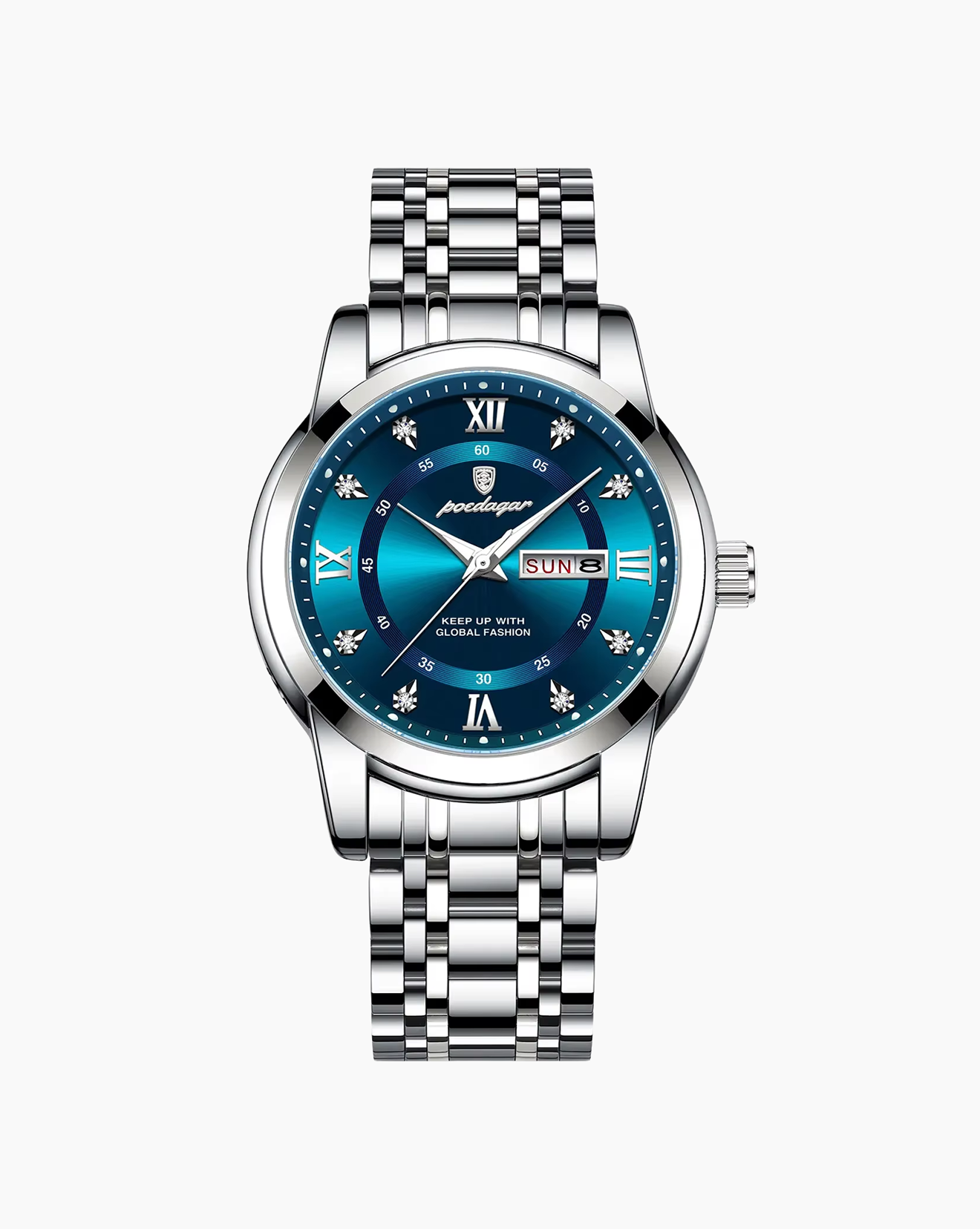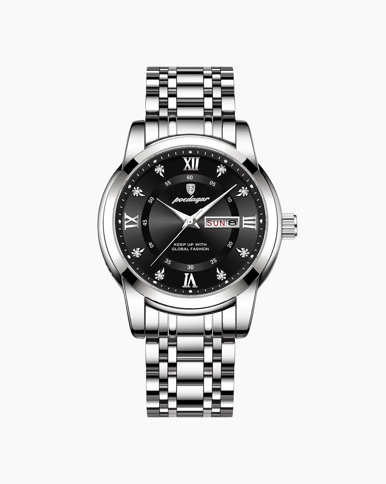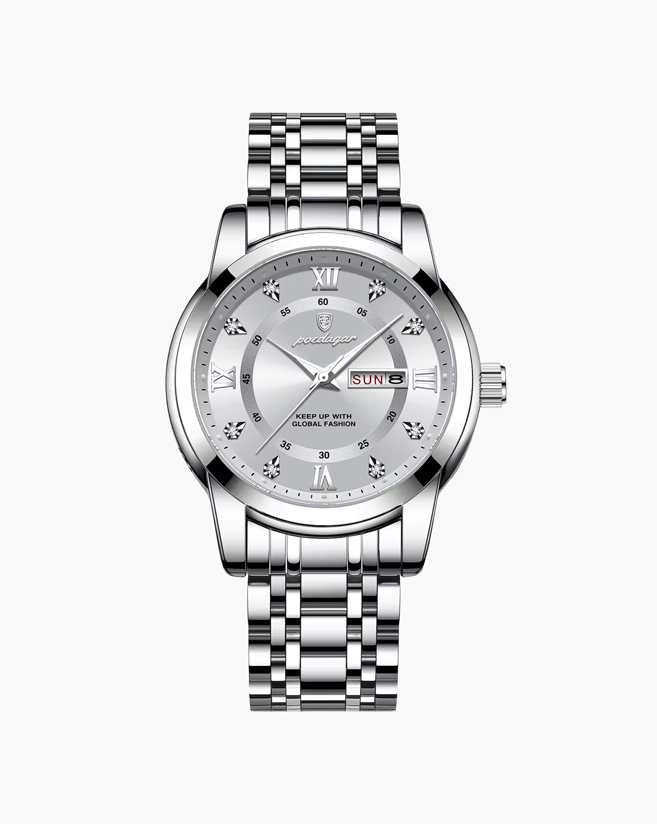 It’s crafted with premium stainless steel and finished with a high-polish bracelet and fluted bezel for maximum durability and brilliance.