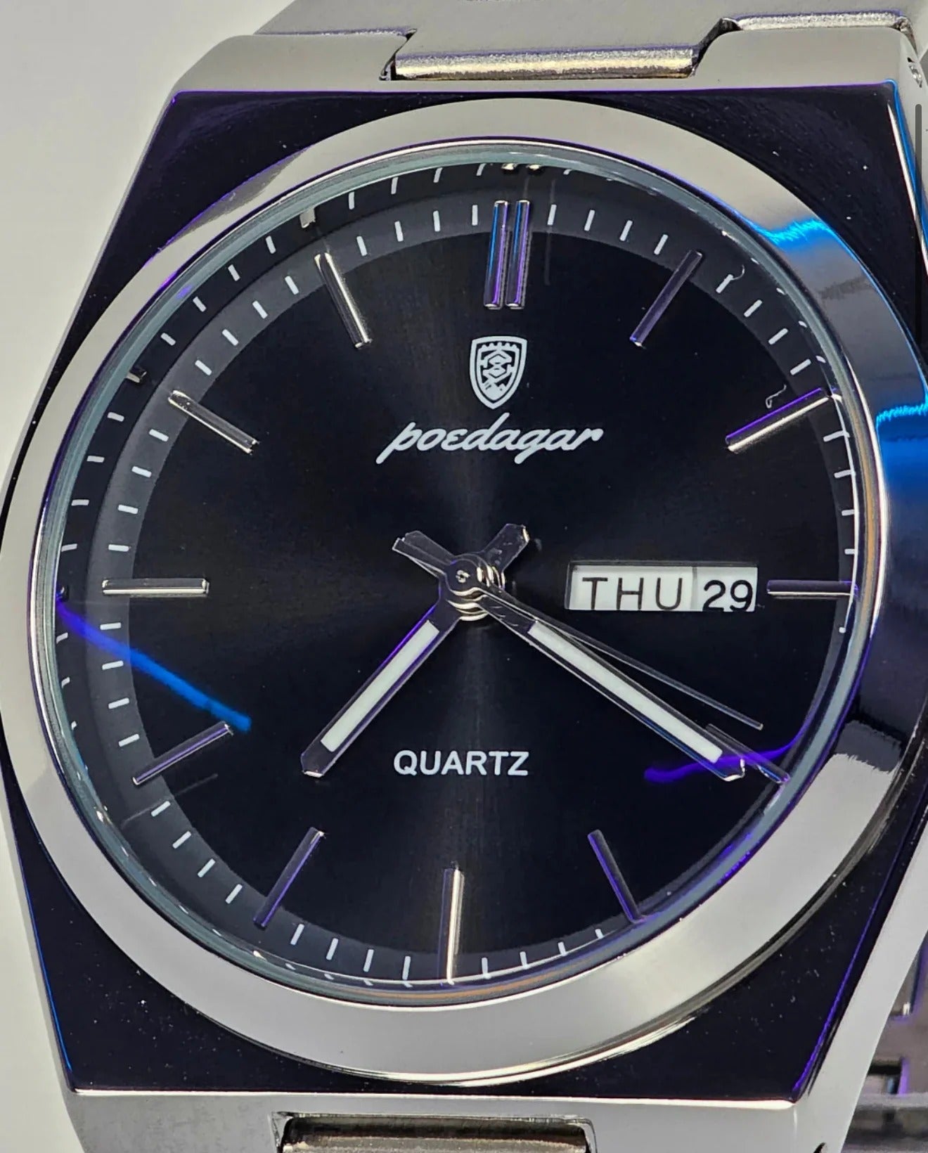 With its brushed steel bracelet and bold sunburst dial, VALENCI blends modern precision with timeless restraint. The day-date window adds practical sophistication, making it a versatile choice for any occasion.